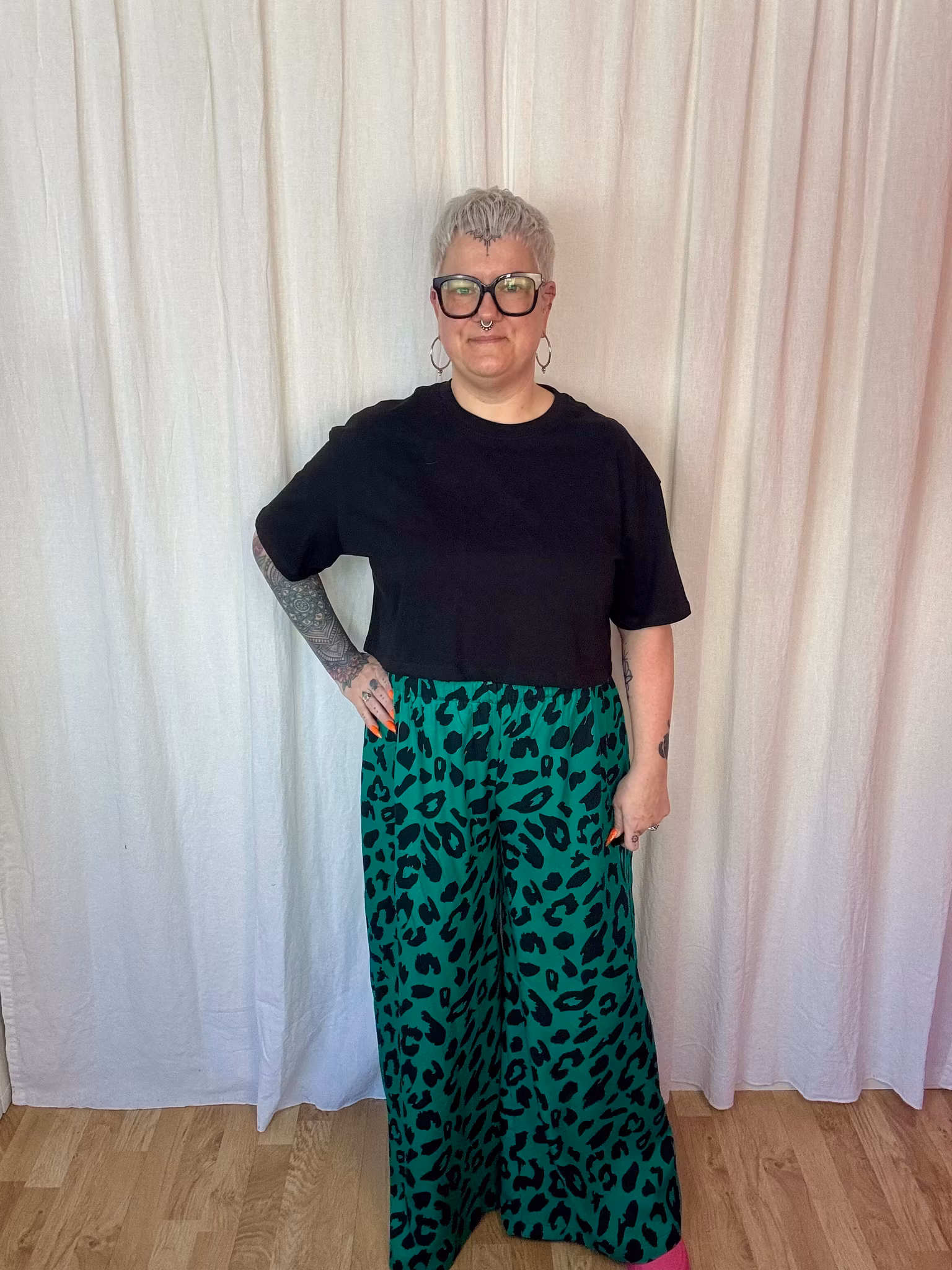 Vår senaste byxmodell med hög midja, fickor i sidorna & mycket vidd, luftiga & bekväma på alla kroppar. Byxan är sydd i vävd viskos/bambu, faller jättefint & har ett dolt resårband i midjan.