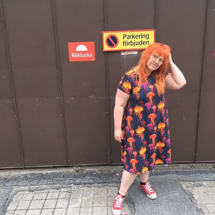 The Groove dress med kort ärm eller 3/4-ärm. Groove dress är en väldigt bekväm modell med mycket vidd nertill.
