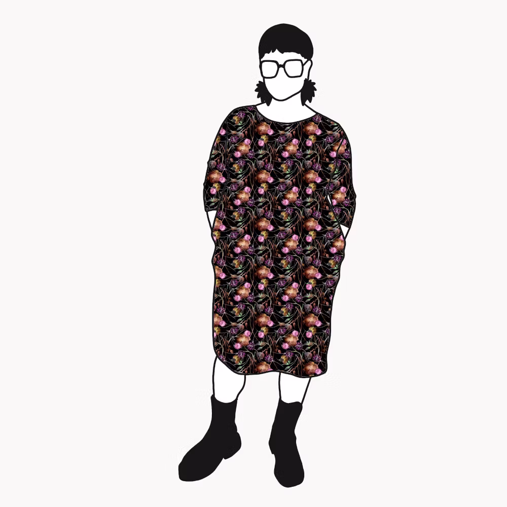 En rak oversized modell med 3/4 ärmar & fickor i sidorna om man önskar