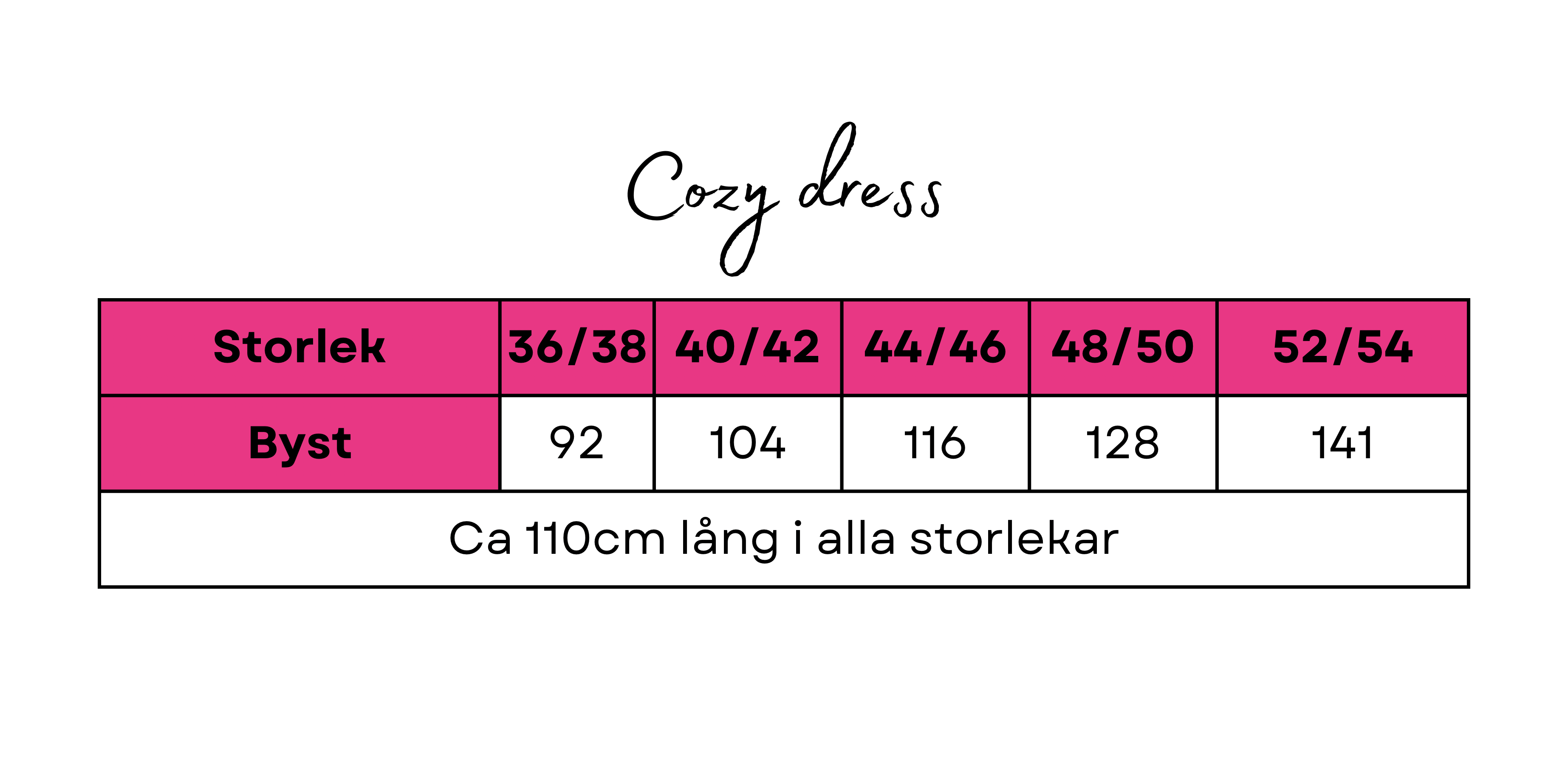 På bilderna på Zanna med den svarta klänningen har hon samma modell men utan Cozy-huvan, båtringning istället, fickor, lång ärm med tumhål & den 4-kantiga kjolen