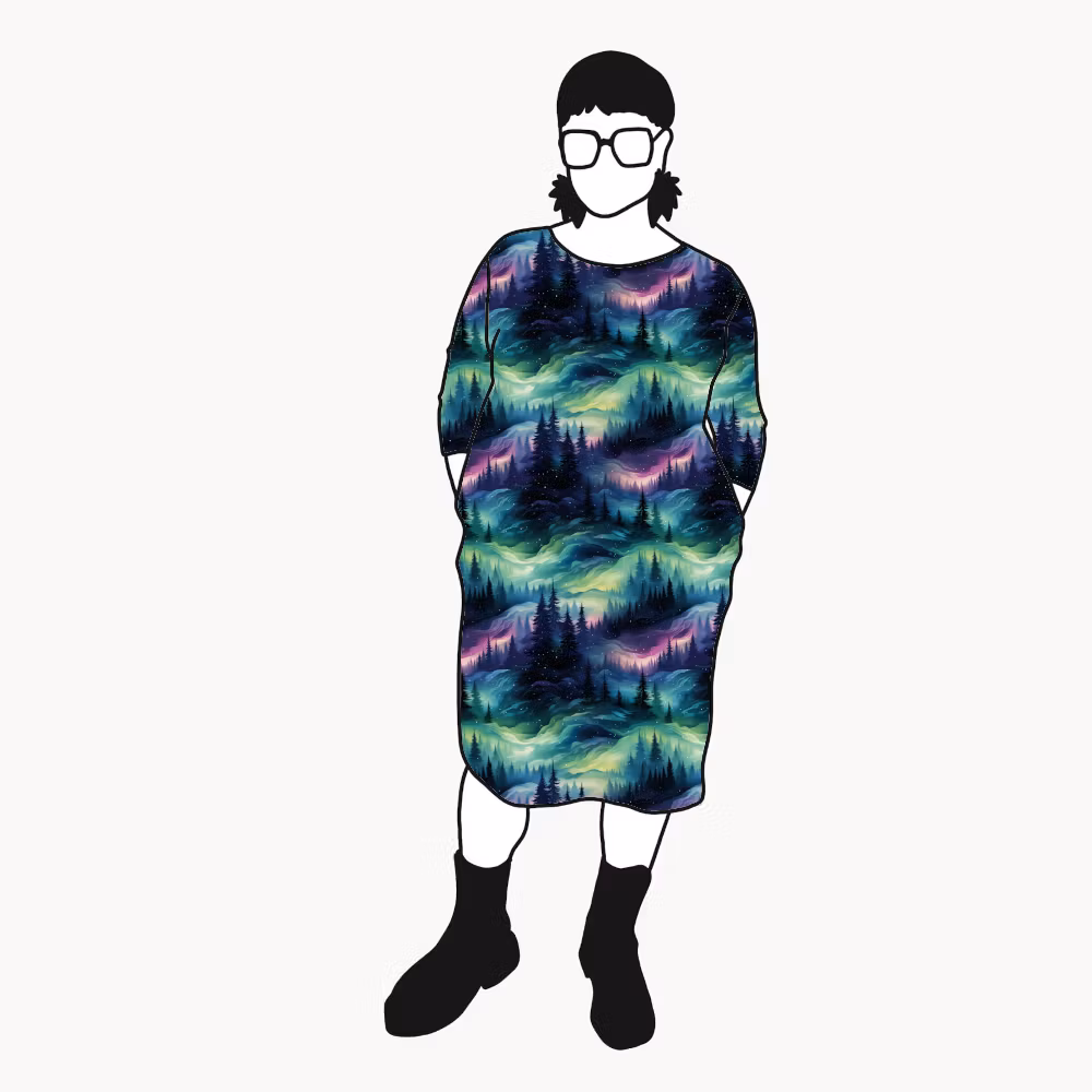 En rak oversized modell med 3/4 ärmar & fickor i sidorna om man önskar