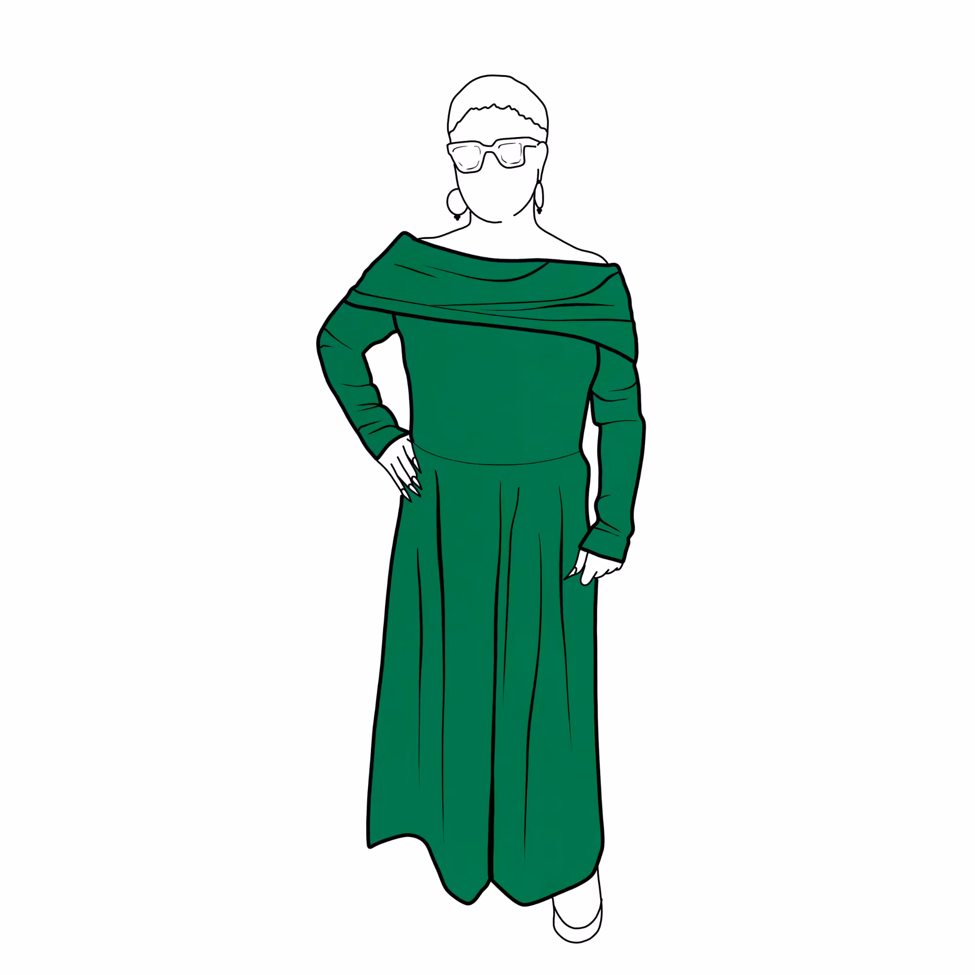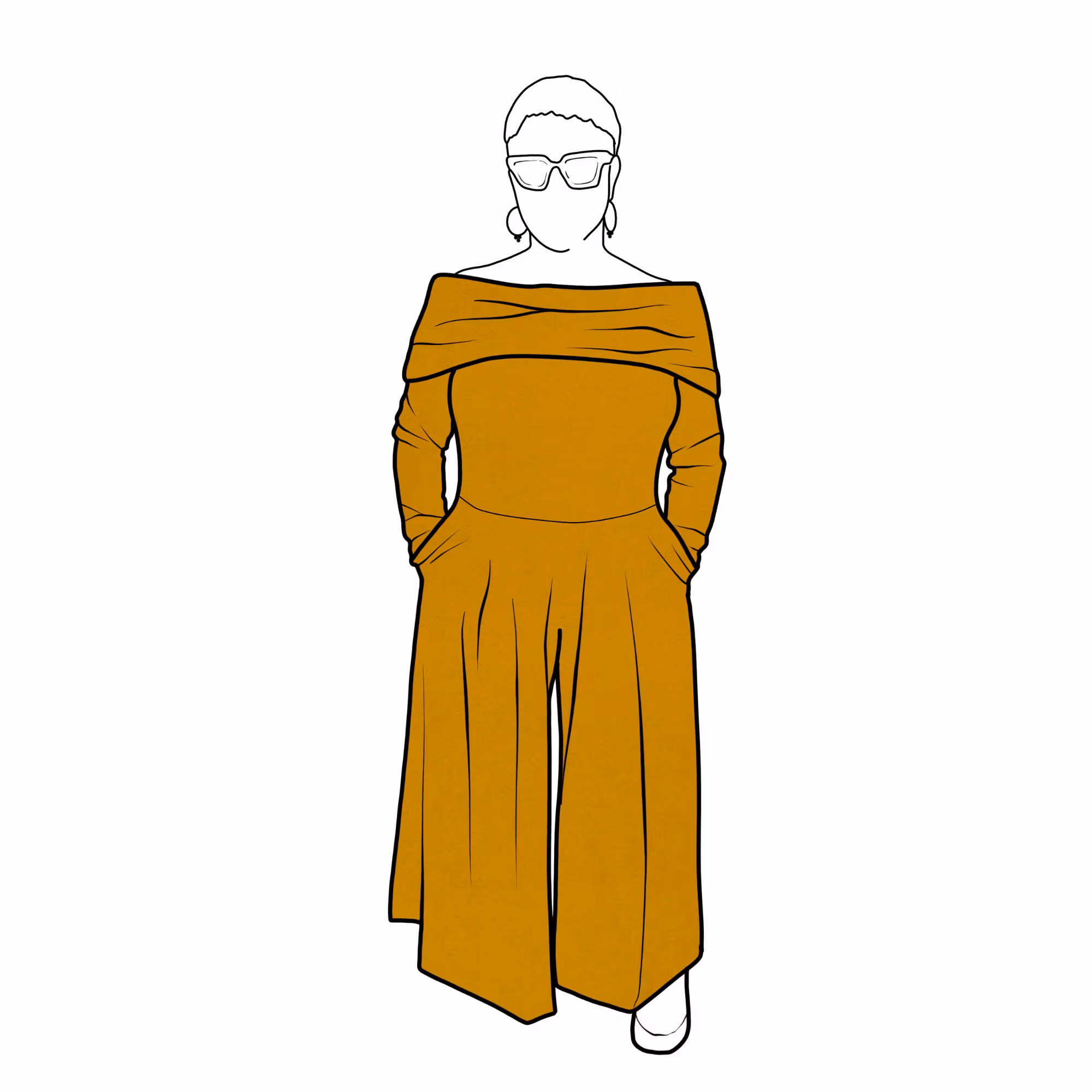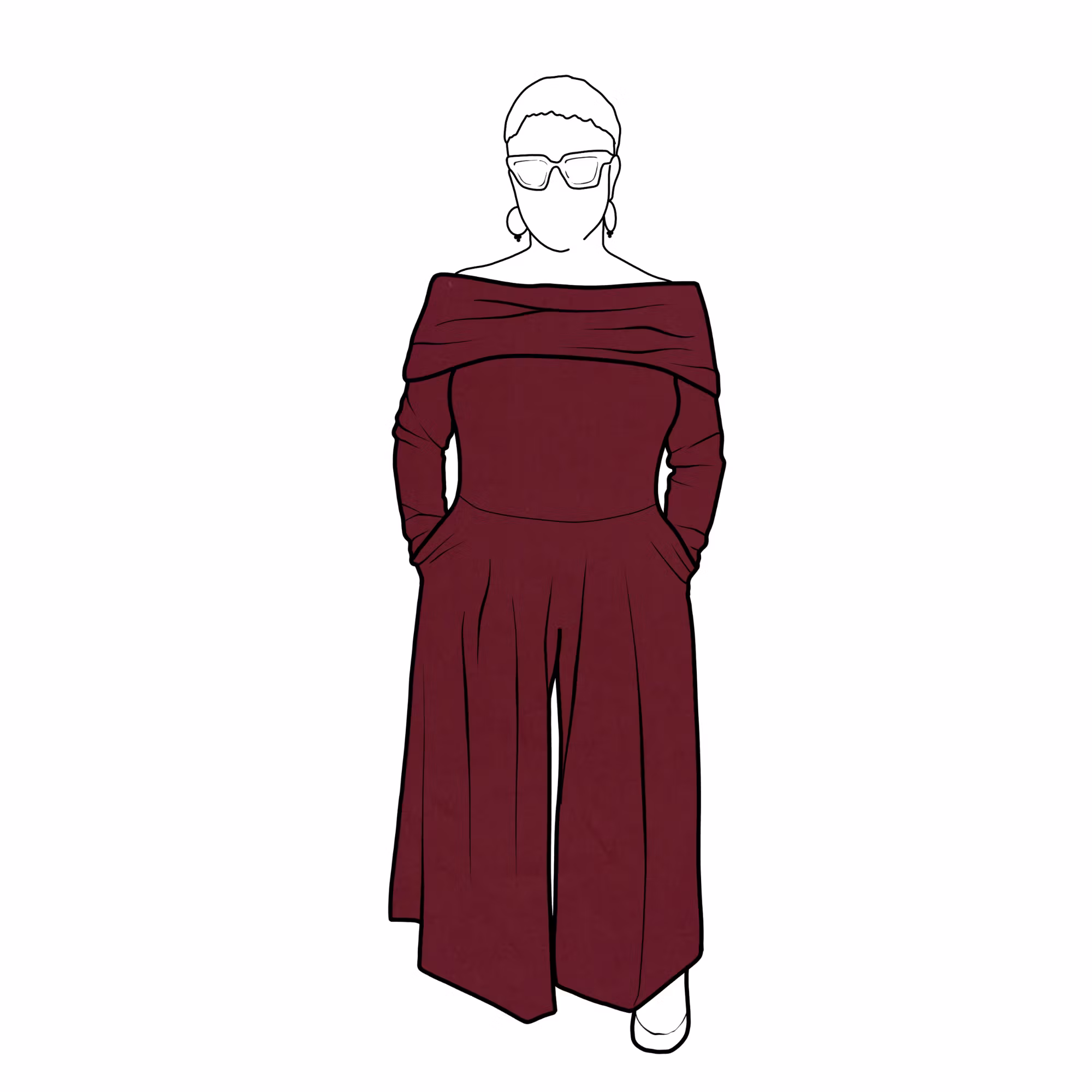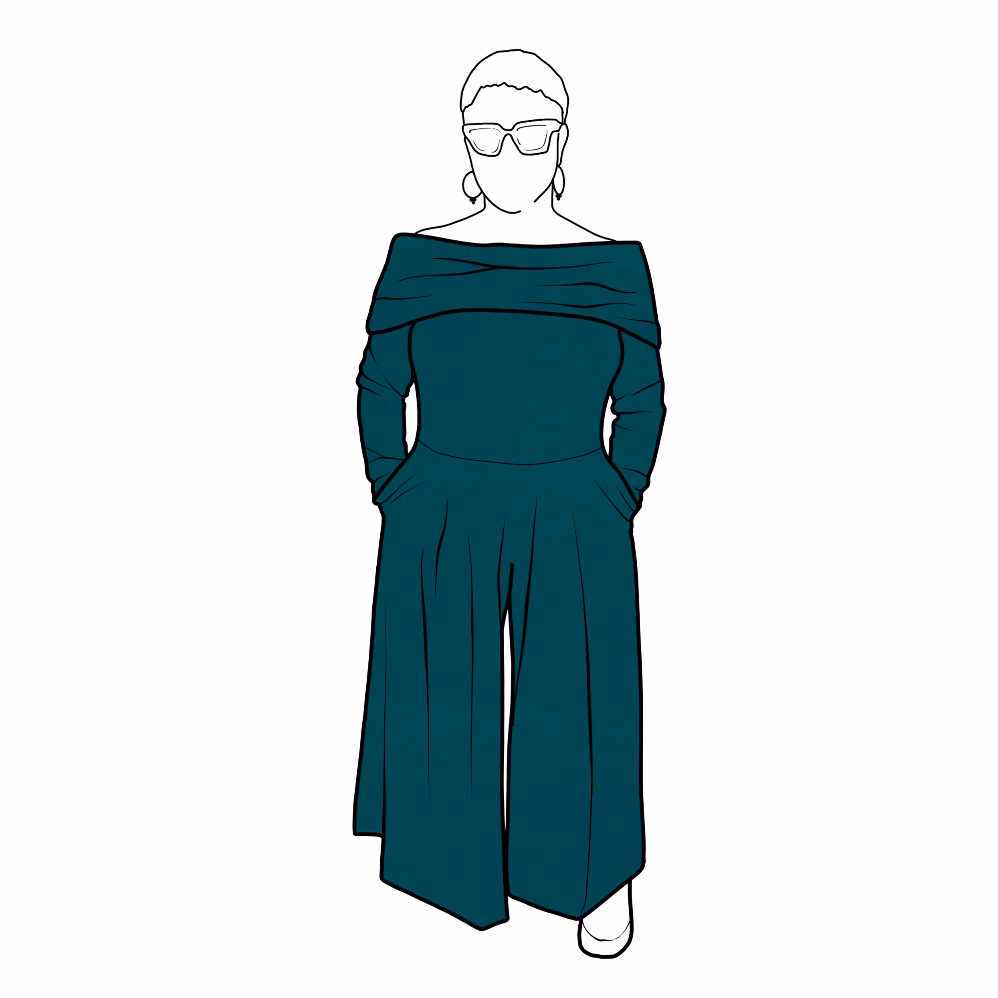Jumpsuit med en off-shoulder överdel, långa armar, vida byxor med hög midja & fickor i sidorna om man önskar