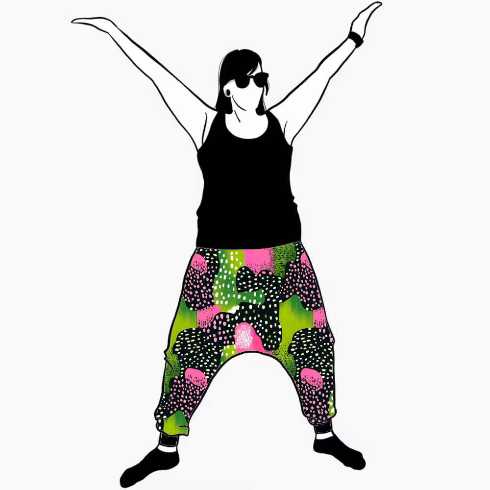 Bekväma & luftiga haremsbyxor med mjuka muddar i midja & benslut. Byxan går att få med eller utan fickor.